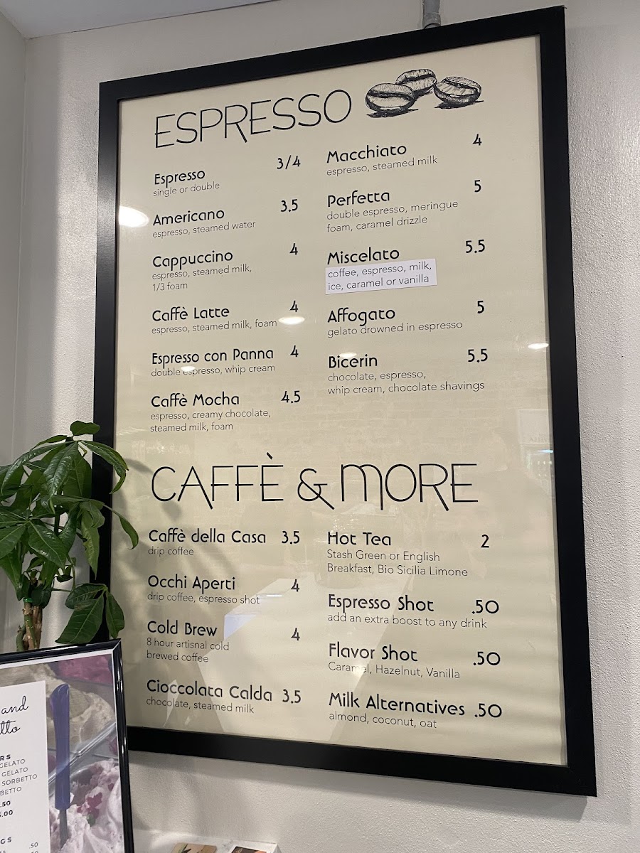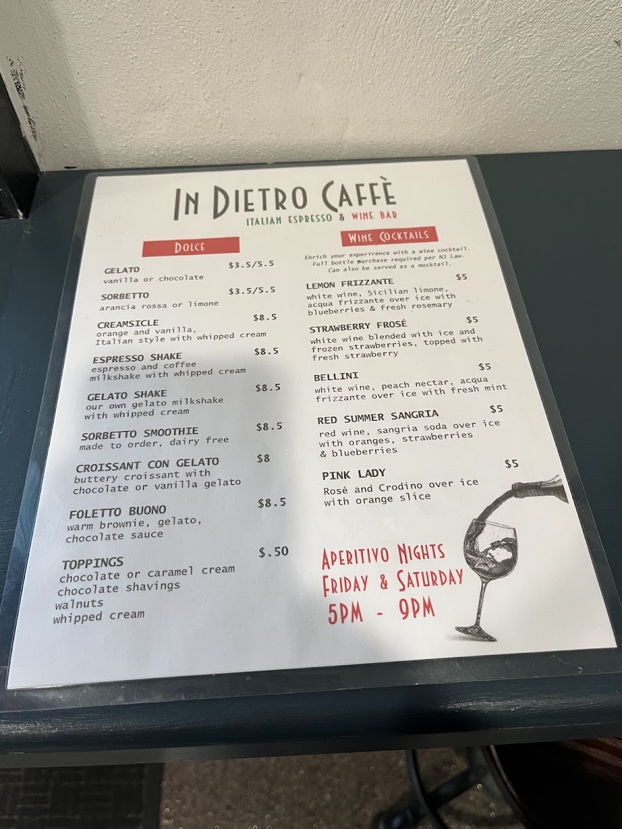 In Dietro Caffè offers a diverse menu, ranging from rich mochas and lattes to seasonal specials like the White Chocolate Peppermint Latte and Holiday Chai Latte. Don’t miss the indulgent Sorbetto Smoothie and Gelato Shake, perfect for a sweet treat. The café also boasts a refreshing selection of wine cocktails, such as Lemon Frizzante and Red Summer Sangria.
